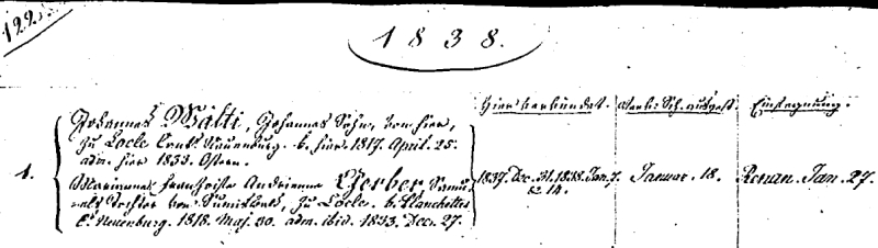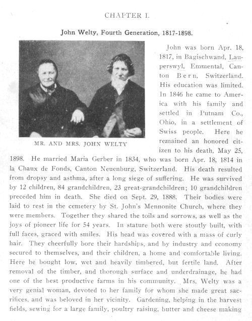 JOHANNES WÄLTI - b.1817 see document references here ![]() ![]() Baptism record - 1817 ![]() Marriage to Marianne Gerber - 1838 ![]() Children of Johannes and Maria Frederick L.G. Welty b.1838 at lower left ![]() |