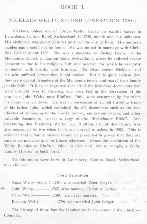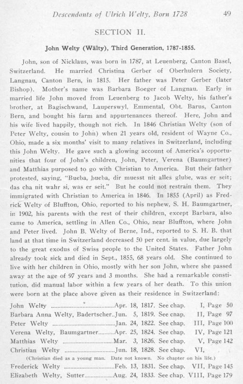 NIKLAUS WÄLTI (WELTY) and family from S.H. BAUMGARTNER -"DESCENDANTS OF ULRICH WELTY" Published 1926 Summary index HERE.with further info Download a PDF HERE.of portions of the book See the discussion of MAJOR ERRORS in the early generations ![]() ![]() ![]() |