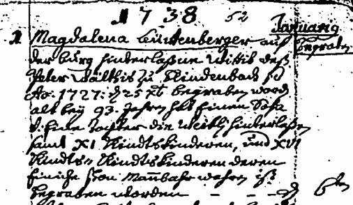 01.01.1738 Magdalena Leüwenberger auf der Burg hinterlassen Wittib,